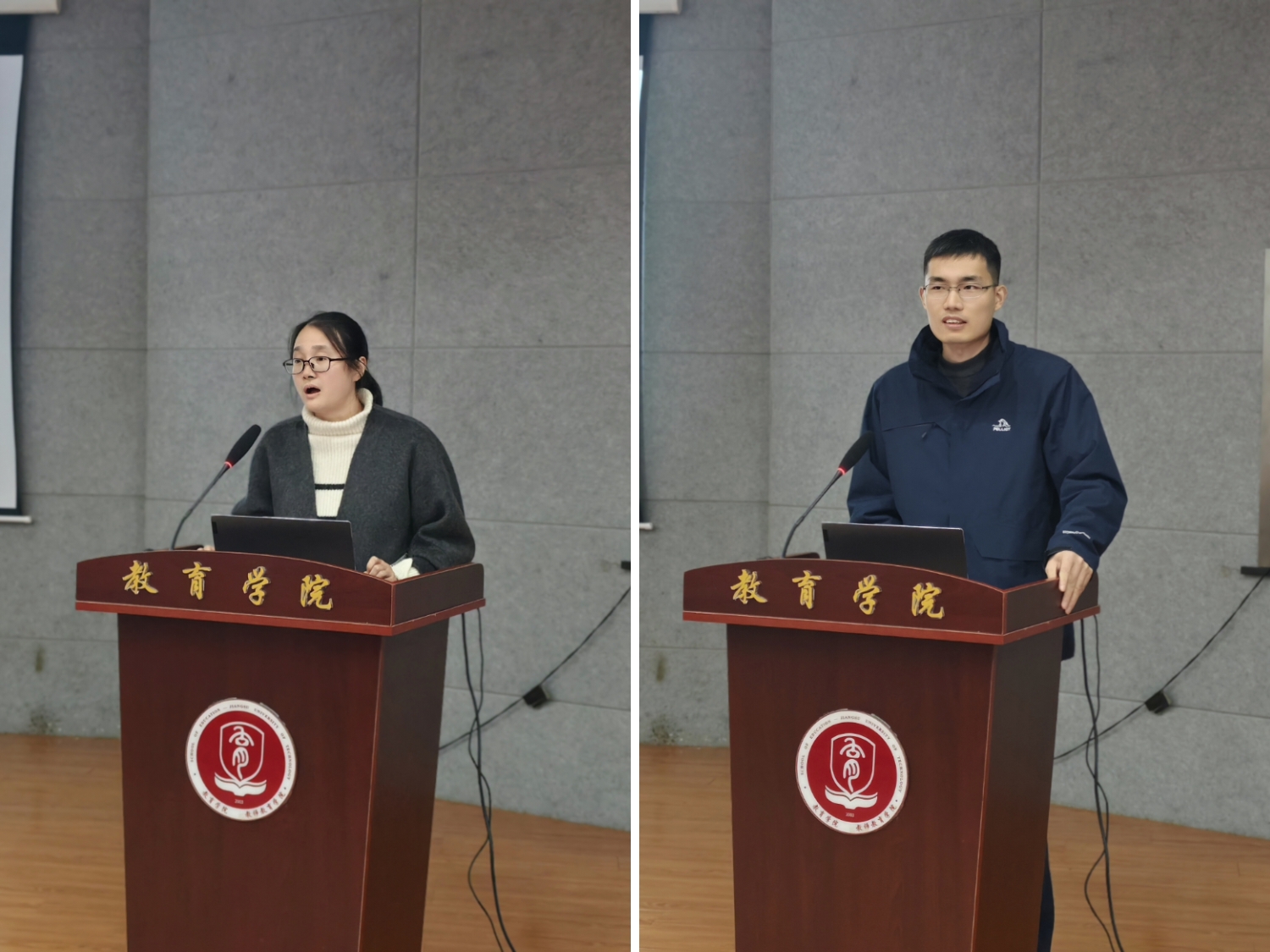 随后,会议进入国内访问学者返校考核汇报环节。吕莉敏老师以《高素质农民数字素养多元协同培育机制研究》为题,结合访学期间的调研数据与实践案例,深入剖析了当前高素质农民数字素养培育的现状与痛点,提出了内外多元协同的培育路径,为服务乡村振兴领域的研究与实践提供了新思路。单文顶老师则围绕《澳大利亚职前教师表现性评价体系研究—以AfGT为例》展开汇报,系统介绍了以澳大利亚AfGT为例的职前教师评价体系的构建逻辑、实施流程与保障机制,重点分析了其在评价指标量化、实践能力考核等方面的特色优势,为优化师范生培养质量评价体系提供了有益借鉴。两位老师的分享内容务实具体、富有启发,展现了扎实的学习成效与积极的进取精神。