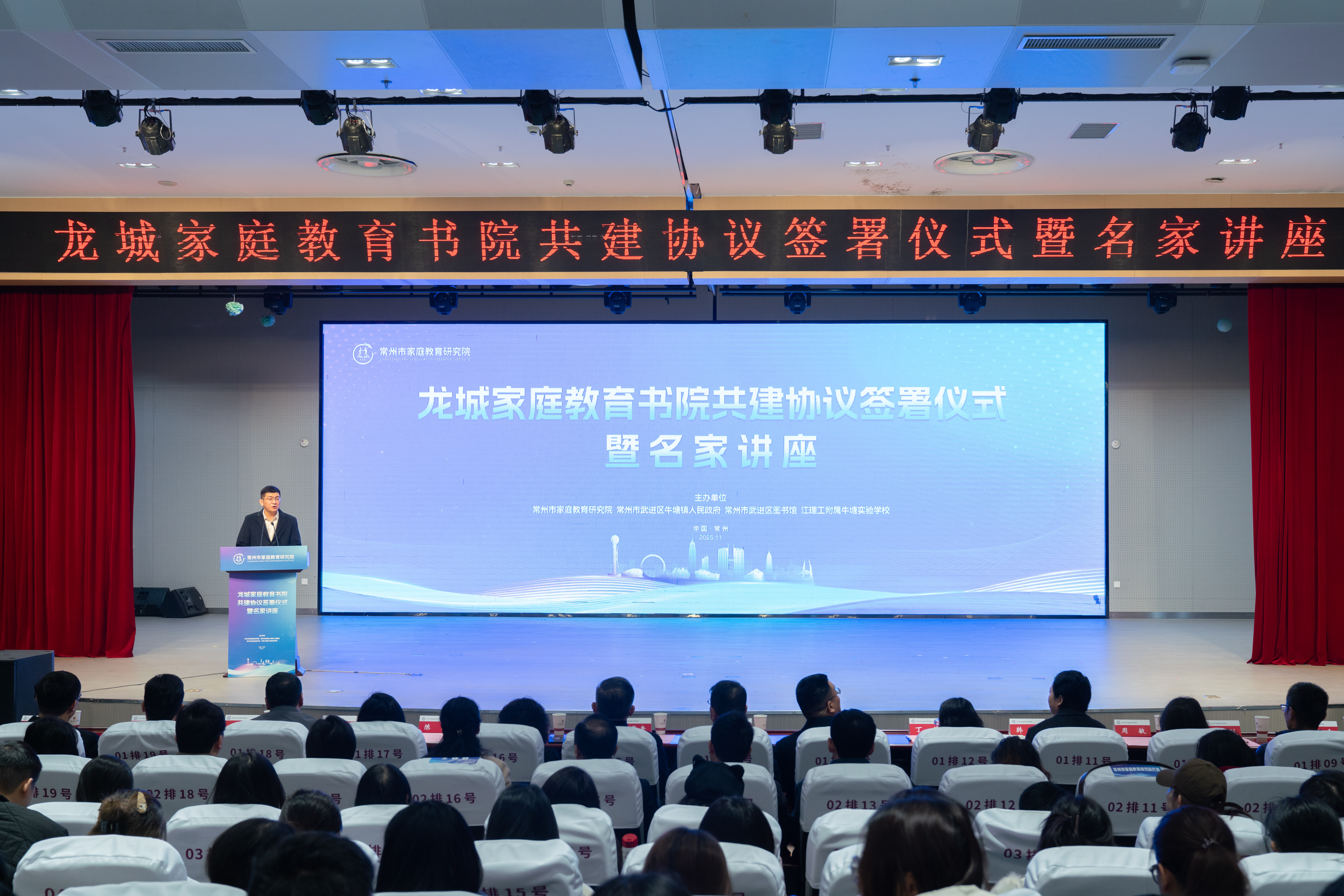 在与会领导嘉宾的共同见证下,常州市家庭教育研究院、武进区牛塘镇人民政府、武进区图书馆、江理工附属牛塘实验学校正式签署“龙城家庭教育书院”共建协议。书院将致力于打造家庭教育理论研究、实践示范、家长培训、资源共享的综合平台,推动家庭教育融入城市发展与公共服务体系。