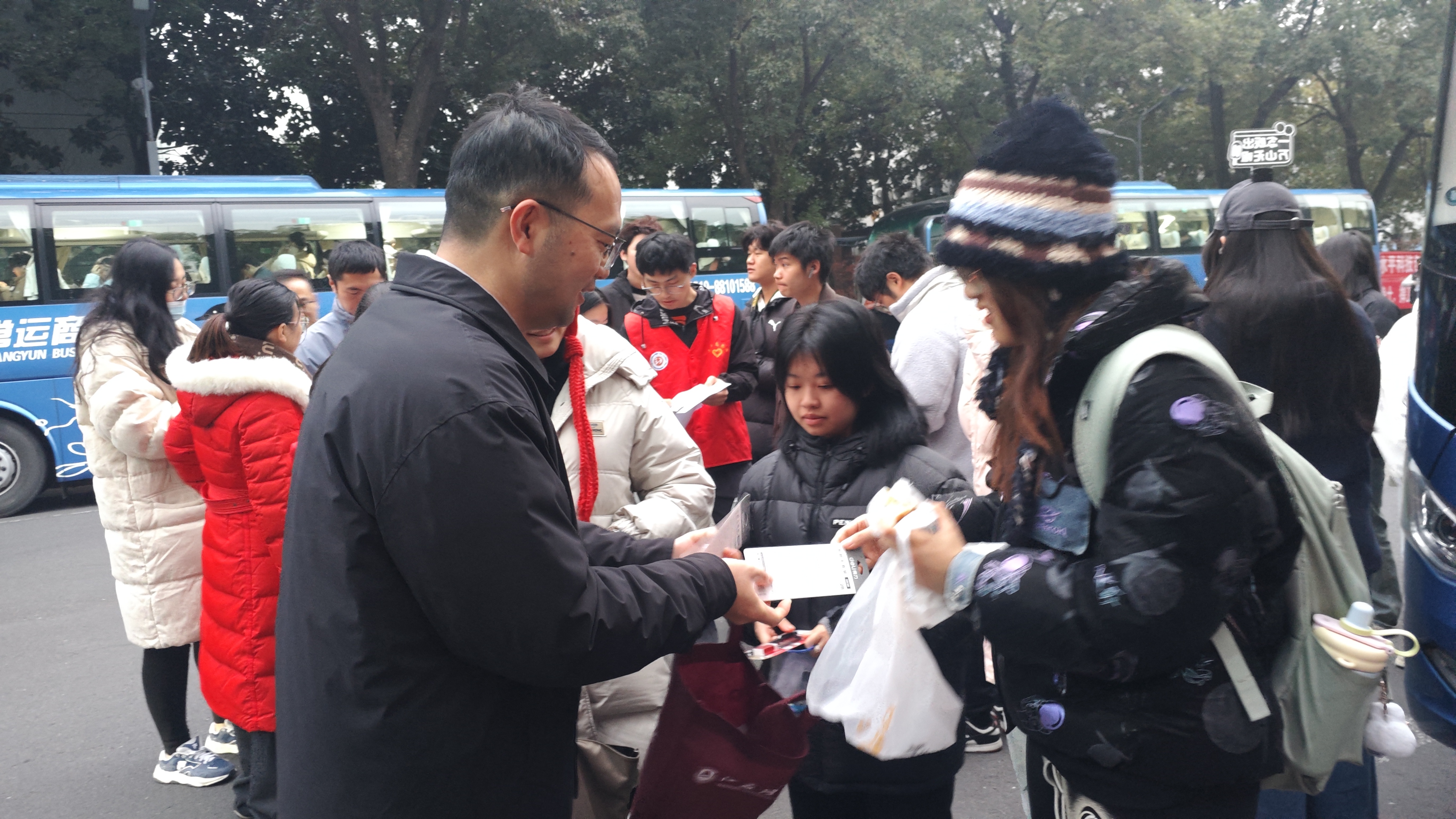 12月20日清晨,寒意虽浓,情意却暖。在2026年全国硕士研究生招生考试即将来临之际,教育学院精心组织了温馨的考研送考活动,为即将奔赴考场的莘莘学子加油鼓劲、送上诚挚祝福。学院党委书记杨新春、副书记兼副院长王云白、全体辅导员共同参与,为考研学子送去关怀与力量。