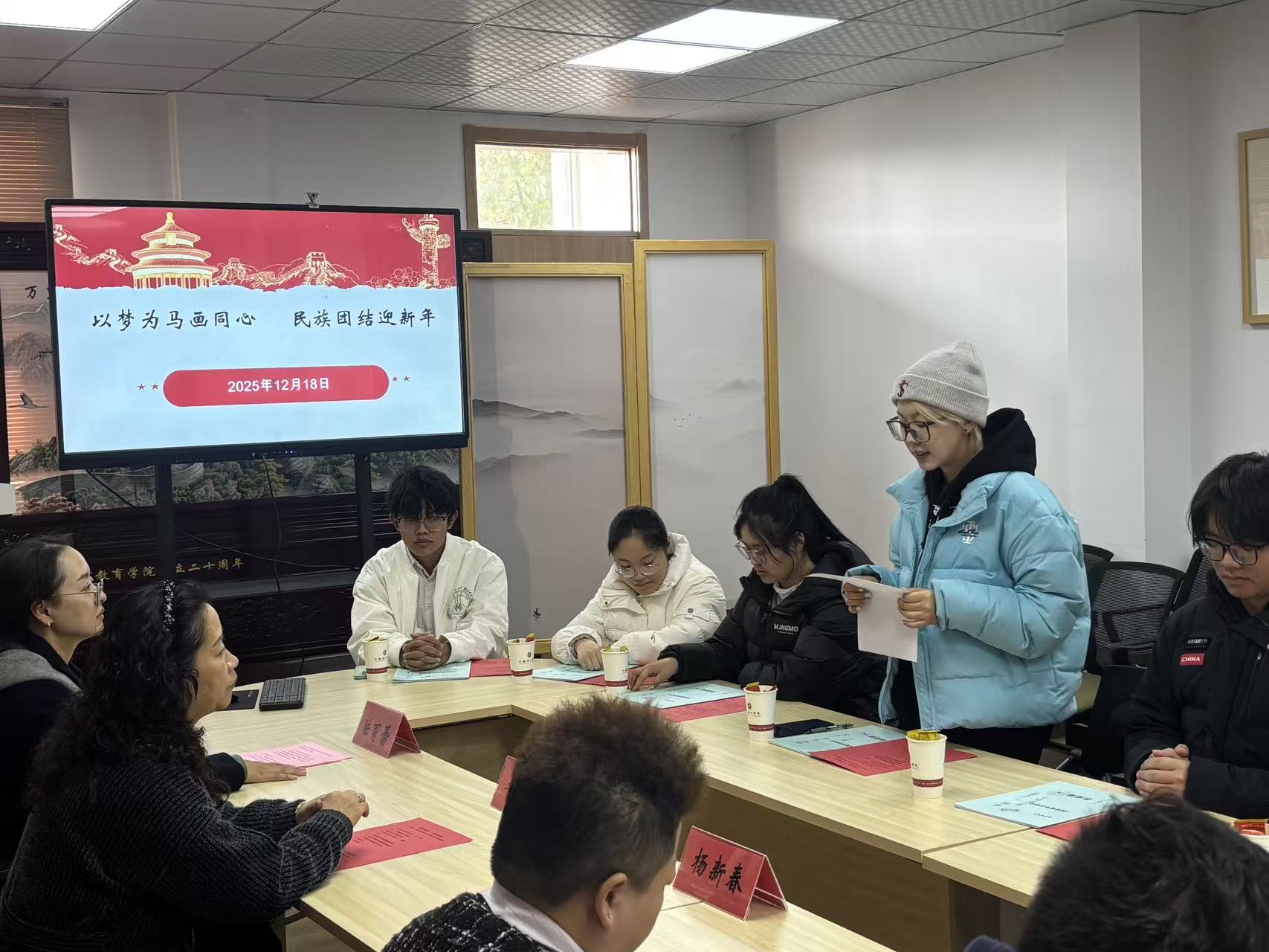 岁末暖聚,同心向远。12月18日中午,由教育学院牵头的校“奔腾”少数民族学生合唱团期末交流会在在职师楼301会议室举行。本次活动是学院深化党建引领统战、推进“暖榴理工”民族团结教育的重要举措,旨在凝聚民族学生力量,铸牢中华民族共同体意识。校“暖榴理工”辅导员工作室负责人、经济学院学工办主任陆育蕾主持。