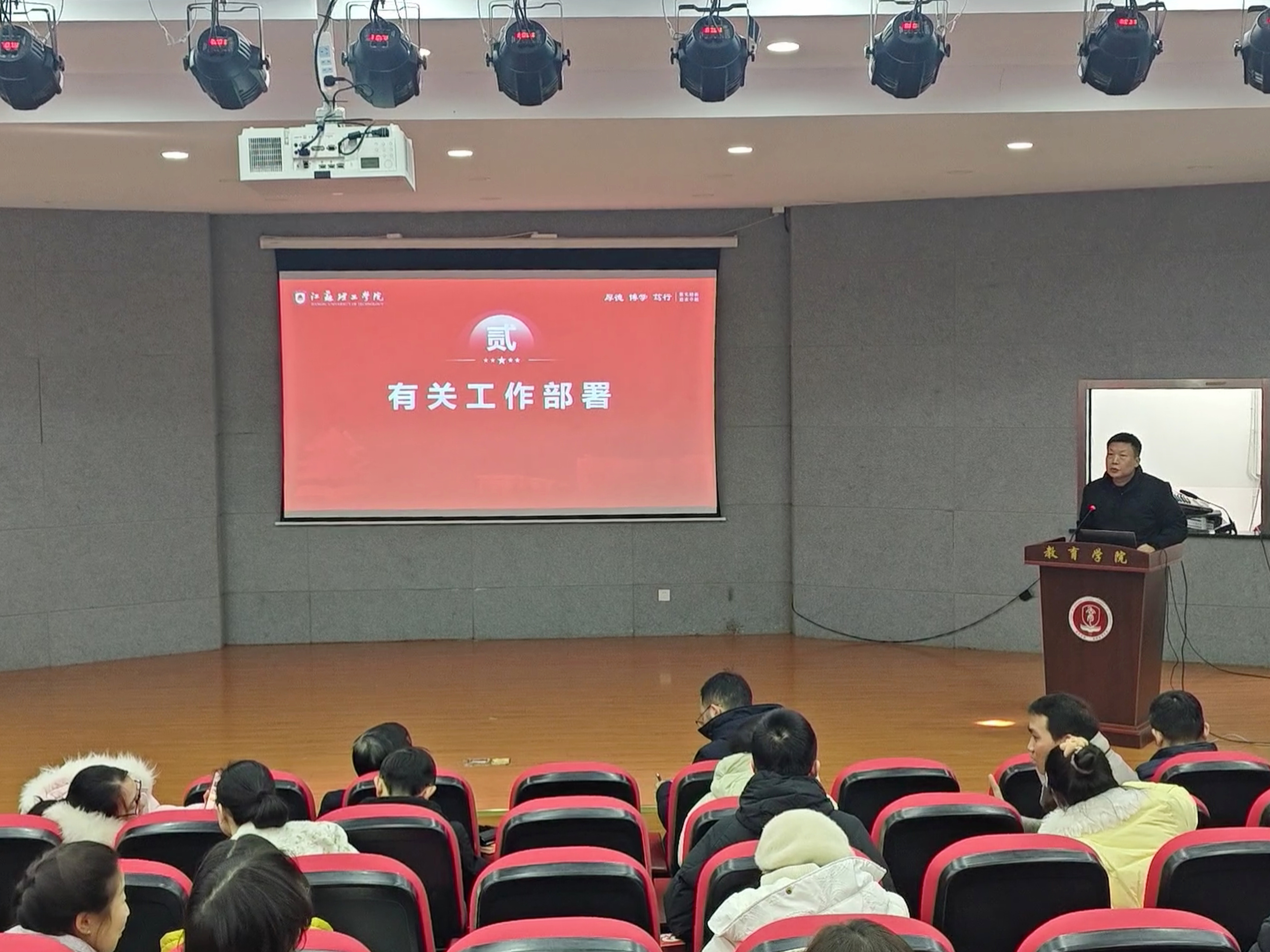 第二项议程为有关工作部署。会议强调,各系(中心)及全体教职工会后要对照要求抓好落实,进一步压实责任,把任务细化到岗、落实到人、明确到节点,形成闭环推进;对期末重点环节再检查、对薄弱环节再加固,确保期末各项工作平稳有序、规范到位、万无一失。