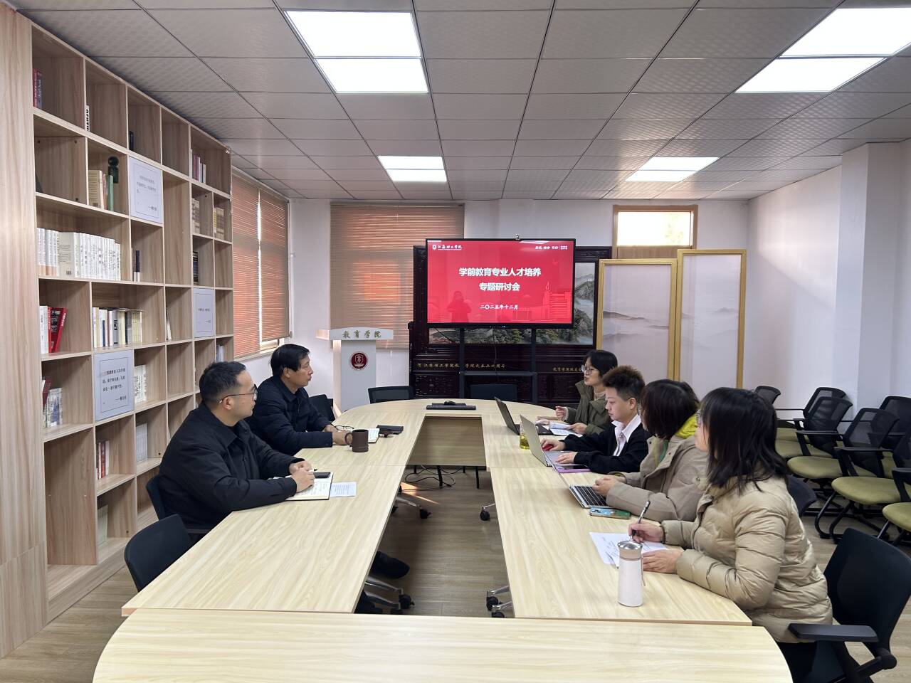 12月30日上午,我院在301会议室召开学前教育专业人才培养专题研讨会。院长李德方、党委书记杨新春以及学前教育专业相关负责人参加会议,会议由学前教育系系主任张芸芸主持。