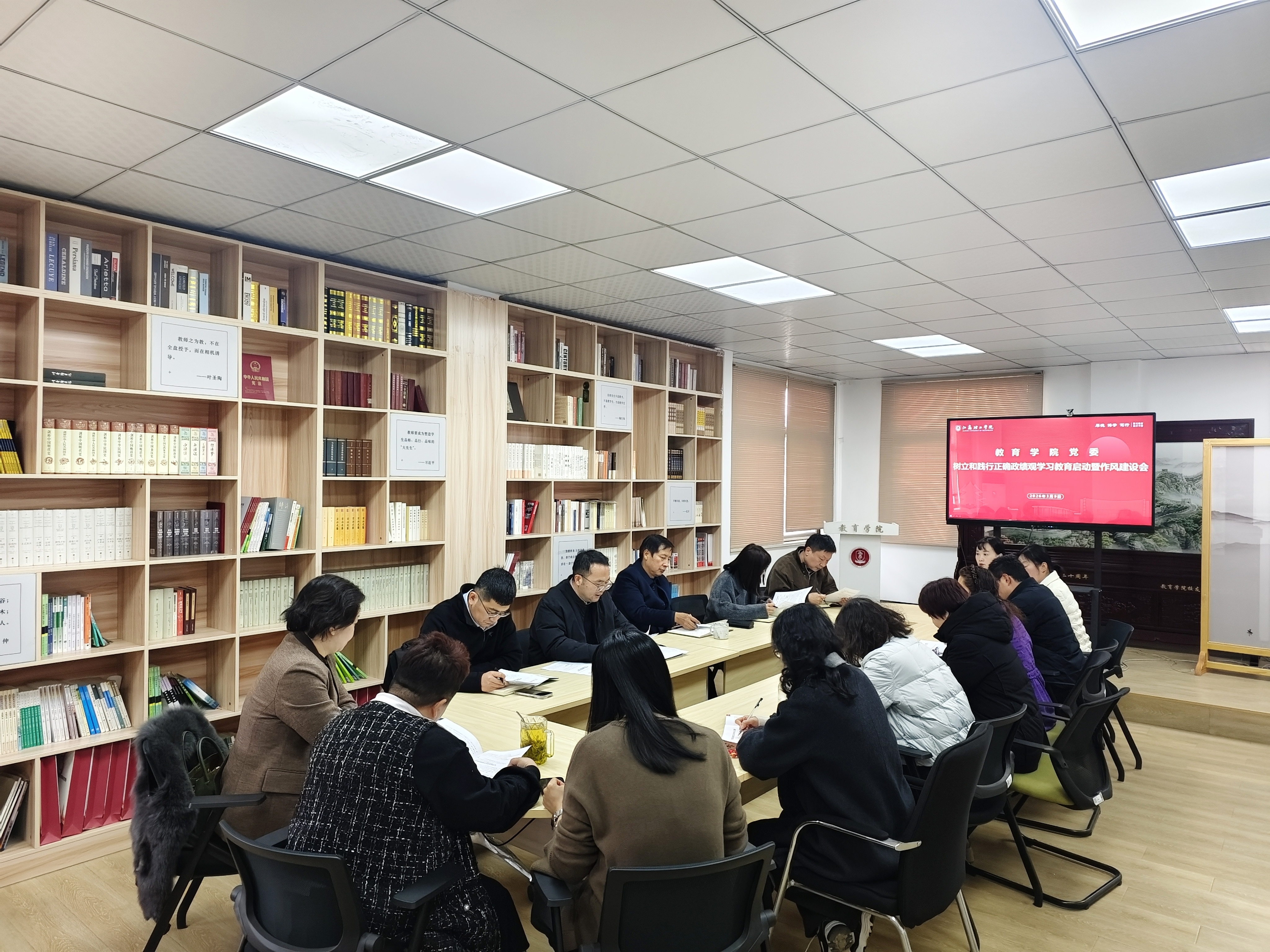 3月9日下午,我院党委在职师楼301会议室召开树立和践行正确政绩观学习教育启动和作风建设动员会,学院党政领导班子全体成员、各党支部书记、支委参加了会议。会议由党委书记杨新春主持。